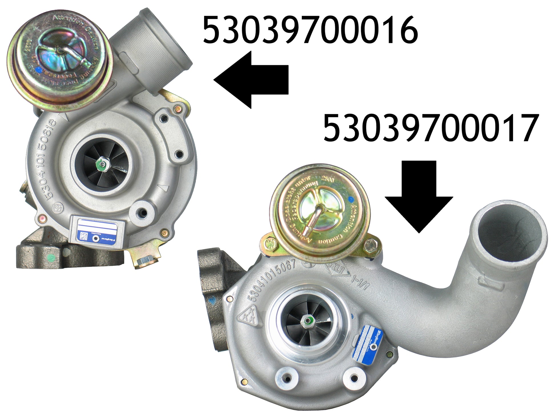 *Importante* Utilice la información anterior para determinar si las piezas de este listado se ajustan a su vehículo. La forma más confiable de asegurarse del modelo de turbo es encontrar el número de pieza en la placa de identificación de su antiguo turbo.