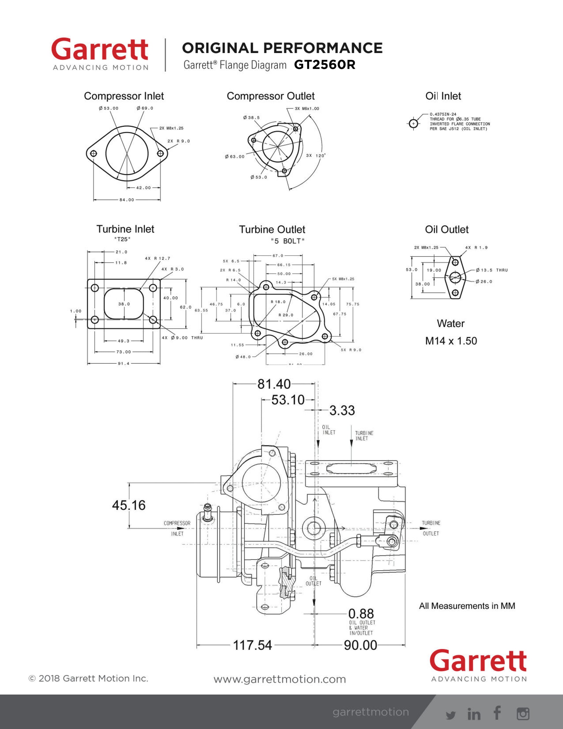 Garrett® GT Series is the name that pioneered turbo technology and boosted drag racing and road racing teams to break hundreds of world records. The GT Series lineup is offered in both journal and ball bearing options, and sizes ranging from GT2052 to GT3582. The cast compressor wheels feature original GT Series aerodynamics and provide maximum durability and longevity. Internally wastegated turbine housing options are available in all GT Series sizes. Turbine kits are offered in open volute and twin scroll, and a variety of A/R and flange configurations. For any performance need, GT Series turbochargers have you covered.