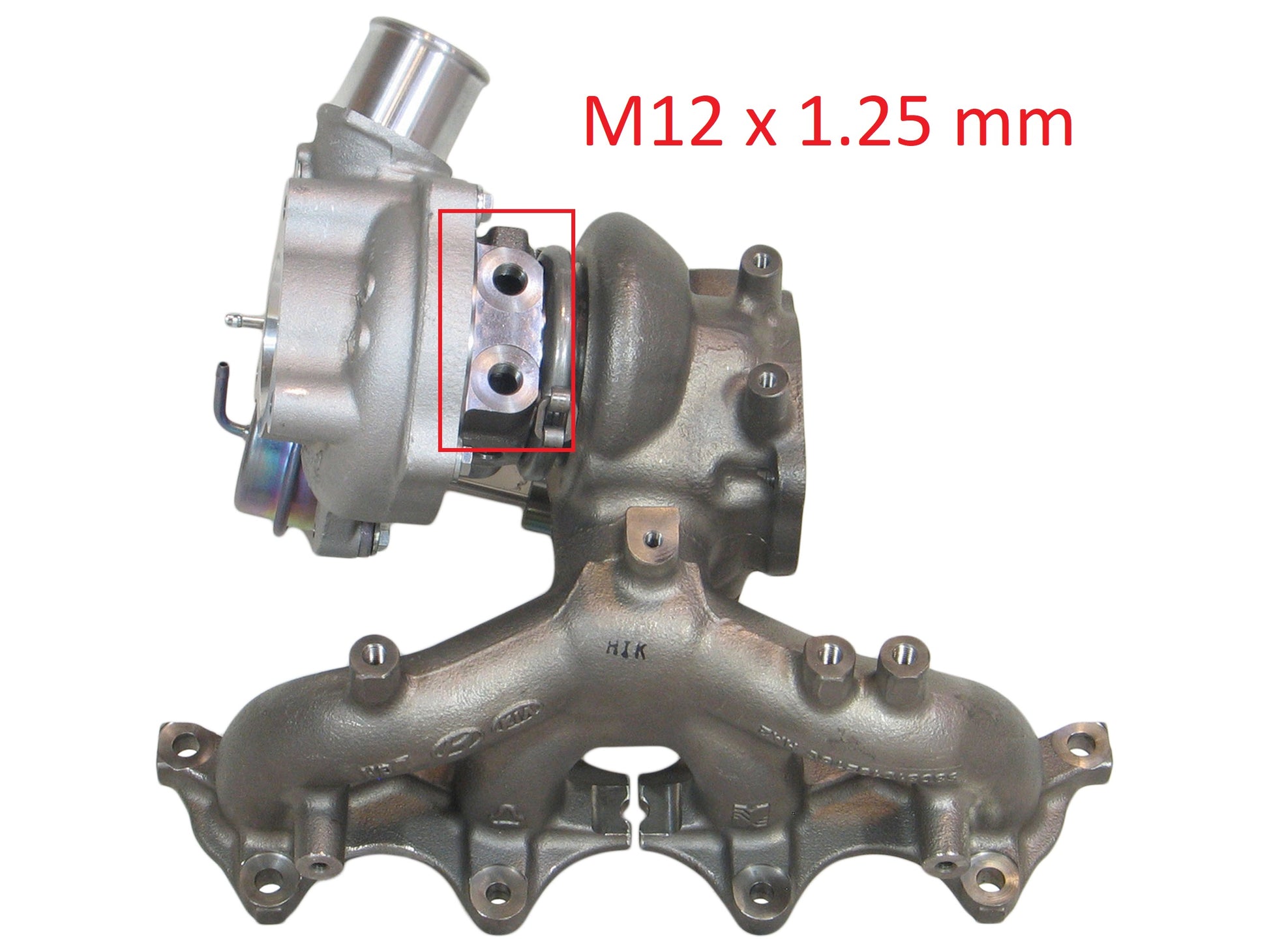 NOTE: This turbocharger's coolant fitting size measurement is M12 x 1.25 mm.