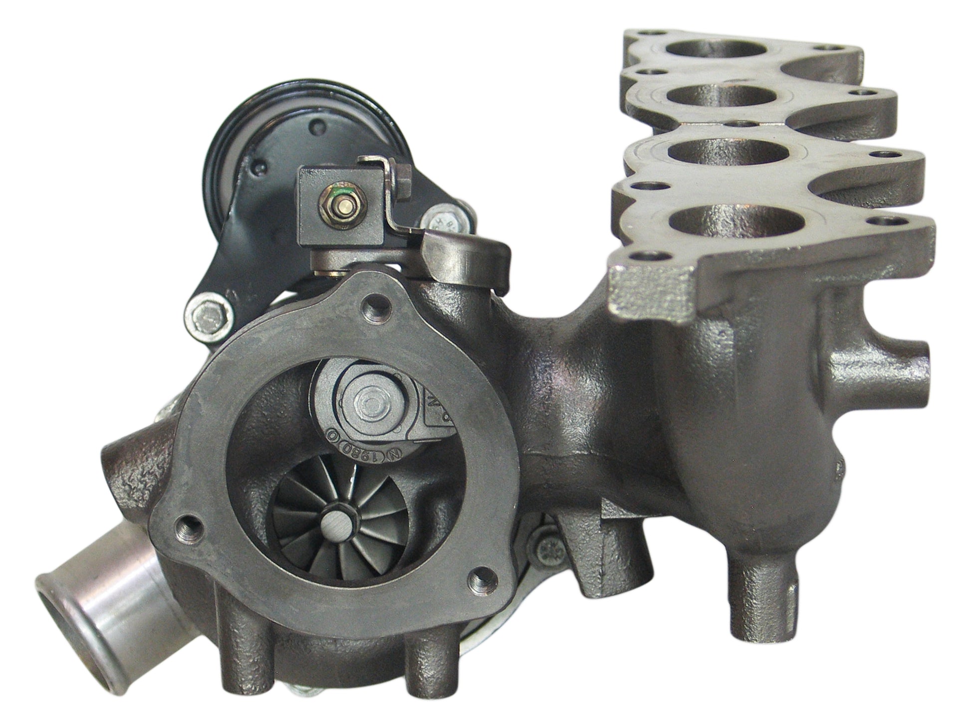 NOTE: Intercooler, water cooled bearing housing. Depending on the year of turbo manufactured, the coolant fitting size measurement may either be M12 x 1.25 mm or M14 x 1.5 mm.